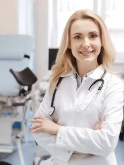 Hannah collects the urine sample for in-house processing and prepares for the physical and pelvic exam by the physician.4