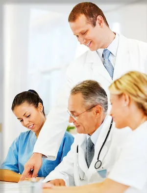 The physician reviews his case notes.