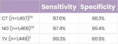 - In studies, this POCT demonstrated high percent sensitivity and specificity across all three STIs.